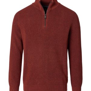 Deze gebreide trui overtuigt met tijdloze elegantie en comfortabele warmte. De fijn gebreide structuur zorgt voor een verfijnde look, terwijl de hoge kraag met rits een moderne touch toevoegt. Of je hem nu over een shirt of los draagt, deze trui is ideaal voor een stijlvolle look op koelere dagen.