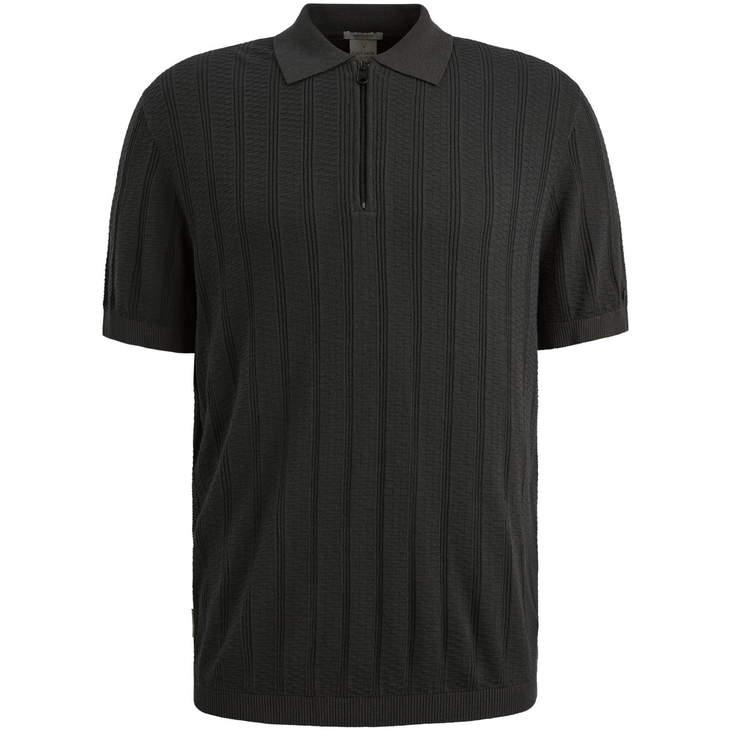 Deze gebreide Cast Iron polo is uitgevoerd in een viscoseblend met een allover structuur. De ritssluiting en lichtgewicht kwaliteit zorgen voor een comfortabele, gekledere look.