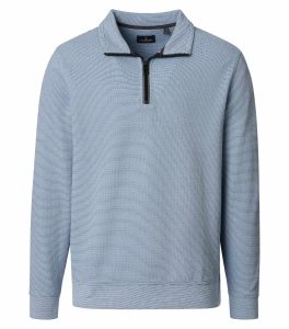 Deze sweater maakt indruk met zijn hoge katoengehalte, wat zorgt voor een aangenaam zacht gevoel en hem ideaal maakt voor vrijetijdsactiviteiten, wandelingen of reizen. De opstaande kraag met ritssluiting biedt moderne functionaliteit, terwijl het klassieke ontwerp veelzijdig blijft. Het subtiele logo op de linkermouw onderstreept de hoogwaardige uitstraling. Dit kledingstuk is gemakkelijk te combineren met een T-shirt, jeans, pantalon of jasje en staat voor betrouwbare kwaliteit, comfort en tijdloze stijl.