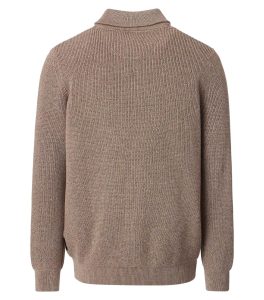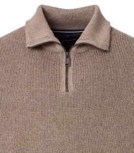 Deze gebreide trui overtuigt met tijdloze elegantie en comfortabele warmte. De fijn gebreide structuur zorgt voor een verfijnde look, terwijl de hoge kraag met rits een moderne touch toevoegt. Of je hem nu over een shirt of los draagt, deze trui is ideaal voor een stijlvolle look op koelere dagen.