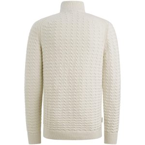 Deze gebreide Cast Iron trui met opstaande kraag is uitgevoerd in katoen bouclé. De allover structuur geeft het item een stoere en tegelijkertijd moderne look. De ribstructuur bij de kraag en halve rits maken het design af.