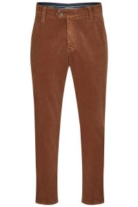 Comfortabele flat-front broek met elastische comfortband en overhemdstopper. Het subtiele contrast op de zij- en achterzakken geeft de broek een sportieve touch. Gemaakt van een high-stretch katoenen gebroken twill. Daarbij komt nog de fade-out kleuring, die het zomerse karakter onderstreept. Het model heeft een normale taille en door de smallere voetbreedte een smaller been.